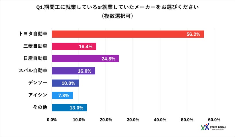 ・調査結果① 期間工に就業しているor就業していたメーカーをお選びください (複数選択可) |