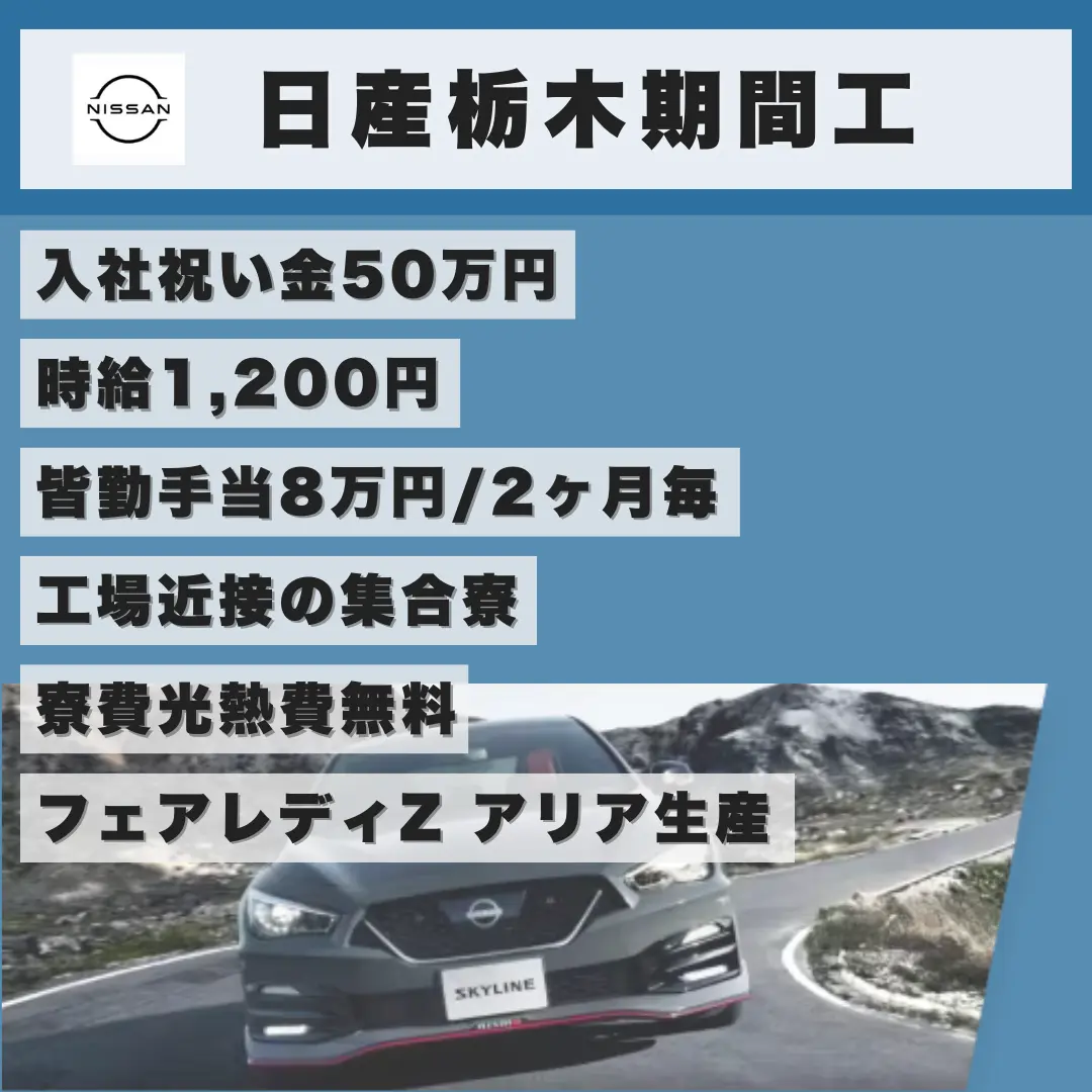 日産期間工栃木への入社目的の一つとして入社祝い金があります。