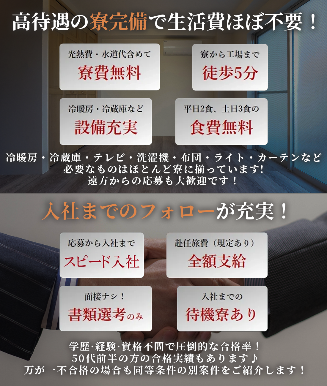 (備品完備!寮での食事無料!水道・光熱費無料)