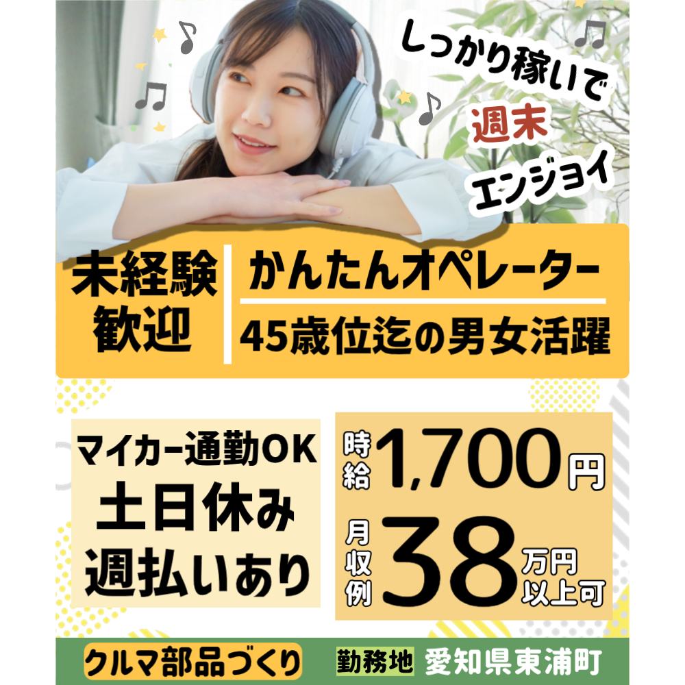 45歳位迄の男女活躍中!/月収38.7万円以上可!/重量物なし/セットするだけ!かんたん機械オペレーター♪/東浦町