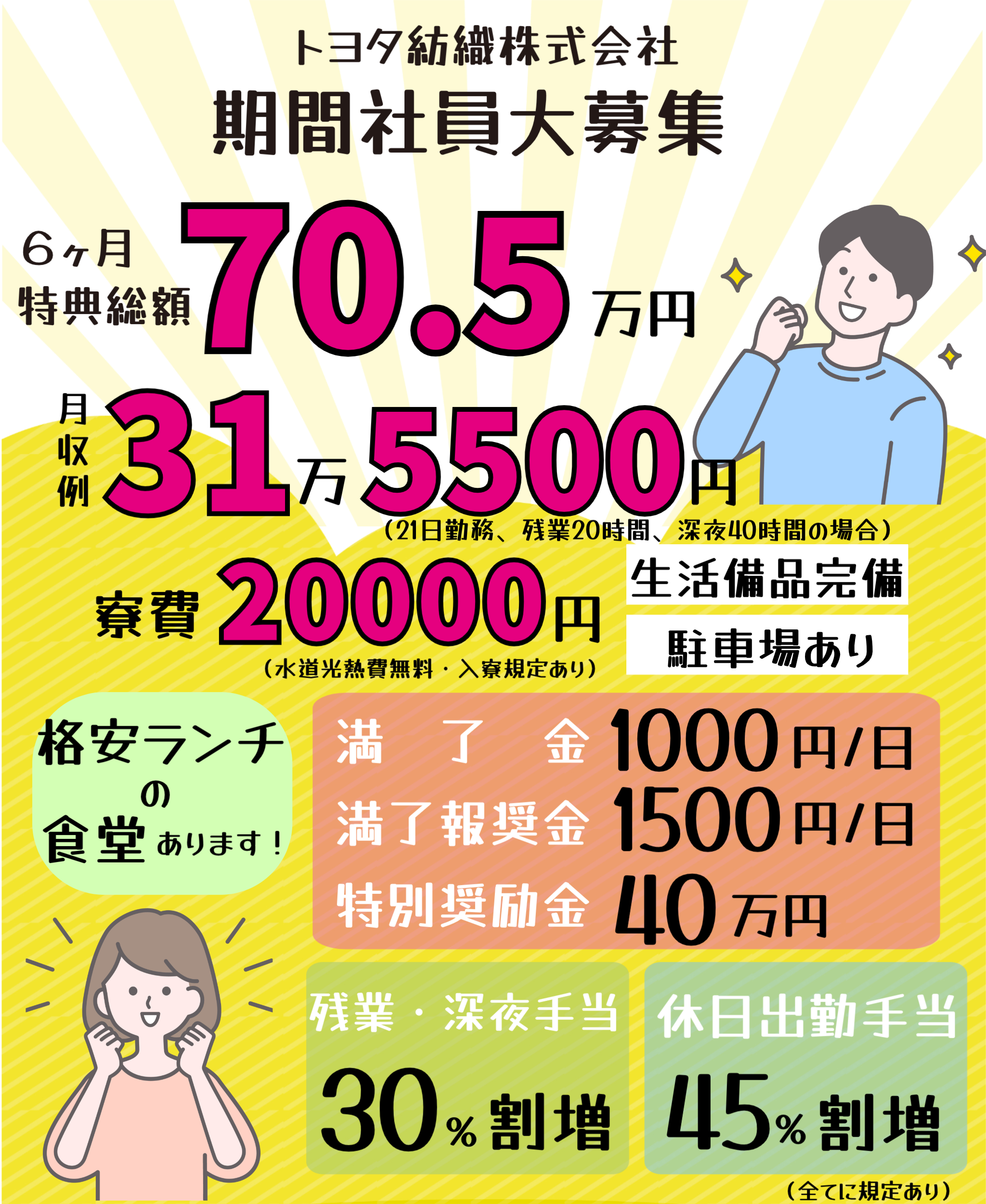 【公式】特典総額70.5万円支給/高時給1600円スタートで昇給あり!/正社員登用制度あり/男女活躍中/<トヨタ紡織(株)期間社員大募集>