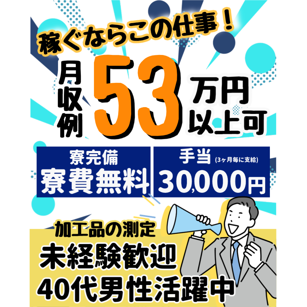 時給2000円!/月収53.5万円以上可/3万円の手当あり♪(3ヶ月毎)/寮費無料◆生活備品付き/未経験大歓迎!/40代迄の男性活躍中/測定のお仕事/愛知県西尾市